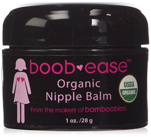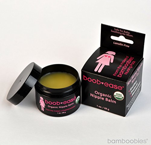 Boob-ease Natural Nipple Balm by Bamboobies New mothers often suffer from sore and cracked nipples in the first few weeks. Protect yourself and your newborn with a non-toxic, certified organic nipple balm. Its all natural ingredients help keep nipples feeling soft, supple, and healthy and it will help prevent or heal cracking and pain caused from breastfeeding. 100% Organic Boob-ease has 100% USDA certified organic ingredients and contains NO LANOLIN, which is known to contain pesticides. THESE INGREDIENTS ARE SAFE for you, and for your child, even children with allergies or eczema. Ingredients: Extra virgin olive oil, beeswax, shea butter, marshmallow root, calendula flower Certified Organic by USDA and Oregon Tilth Size: 1 oz Bamboobies nursing pads and other nursing aids have been created with love from one mother to many others. Bamboobies began as a solution to a personal problem: I was very 'leaky' and couldn't find a pad that didn't leak or show through my shirt. It was in 2009 when the funny name "Bamboobies" popped into my head after I turned a square of bamboo velour fabric into a makeshift pad. I had an entrepreneurial business background, a creative urge, and a sense of mission that couldn't be stopped. What began as a singular idea has quickly blossomed. After creating original and overnight Bamboobies nursing pads, I began to address other pregnancy and new mother challenges. My company has since continued to grow and we are dedicated to improving mother and baby's health, and minimizing environmental impact, and we thank you for supporting us in this.Feature