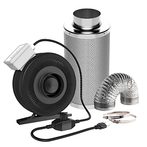VIVOSUN 4 Inch 203 CFM Inline Fan with Speed Controller and 4" Carbon Filter 8 Feet Ducting Combo