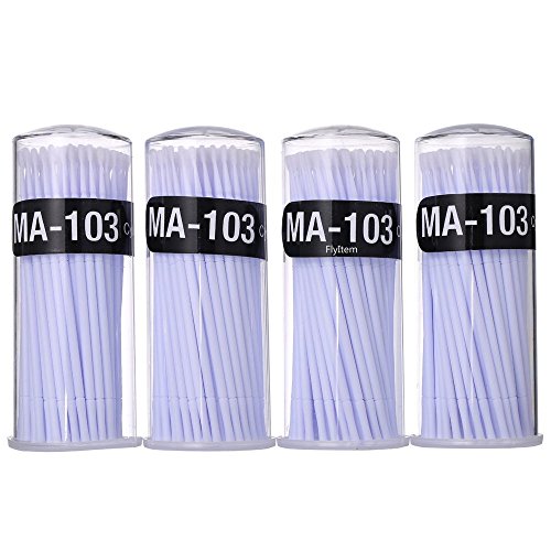FlyItem 400 Pcs White Professional Cylinder Disposable Micro Mascara Applicator Brush Bendable Individual Eyelash Extension Mini Fiber Swabs Eye Lash...