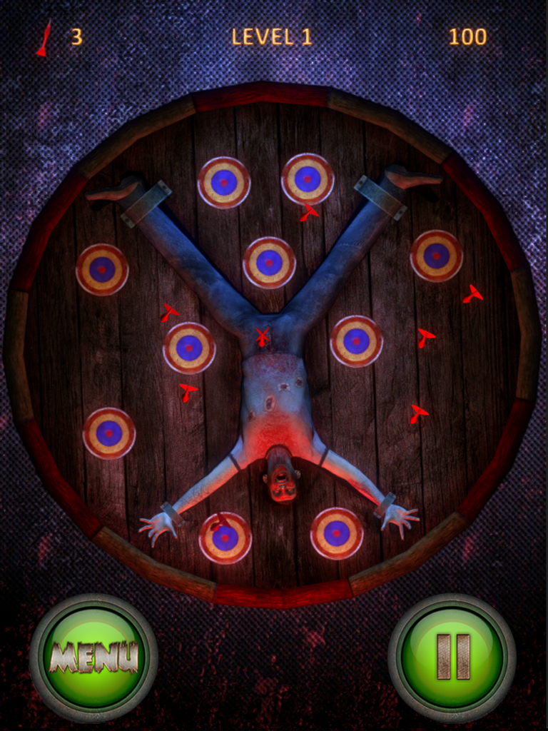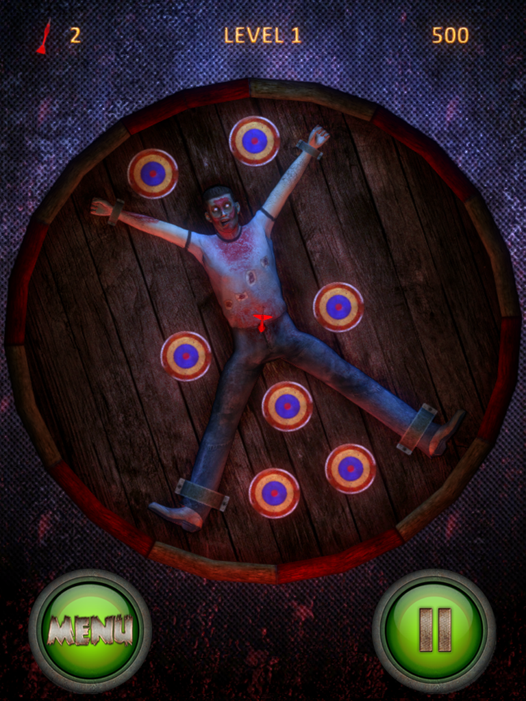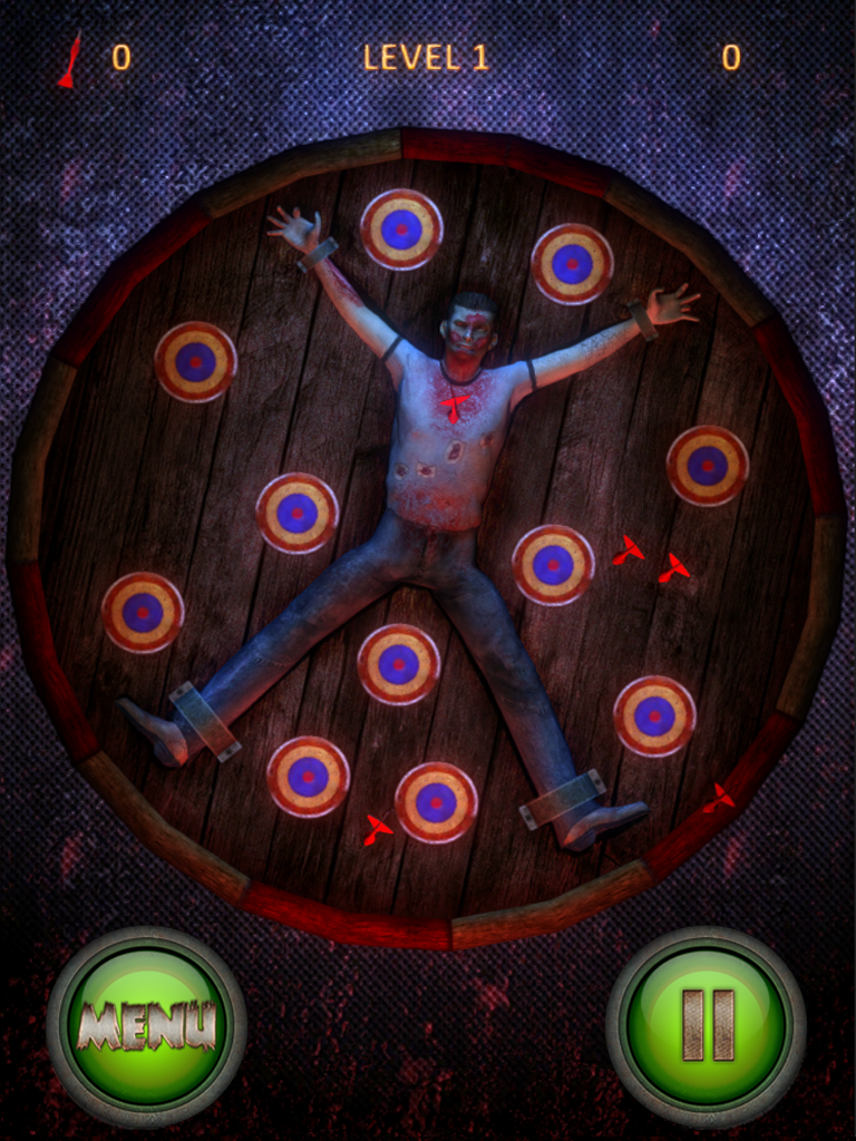 ZombDart is a very addicting arcade game featuring a REAL looking zombie that actually feels pain. When you hit him with darts he screams with real facial expressions and body movements making you feel his pain with him! The main objective of the game is to NOT hit the zombie but hit all the bullseye's as you can to score the most points and advance to the next level. When you clear the level, the wheel spins faster each time making the game more challenging the further you progress.