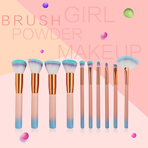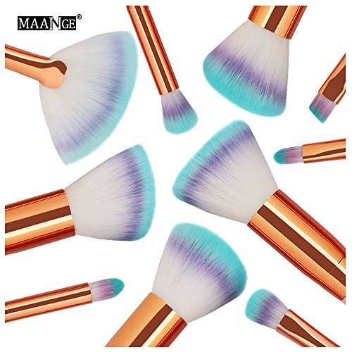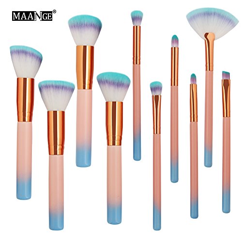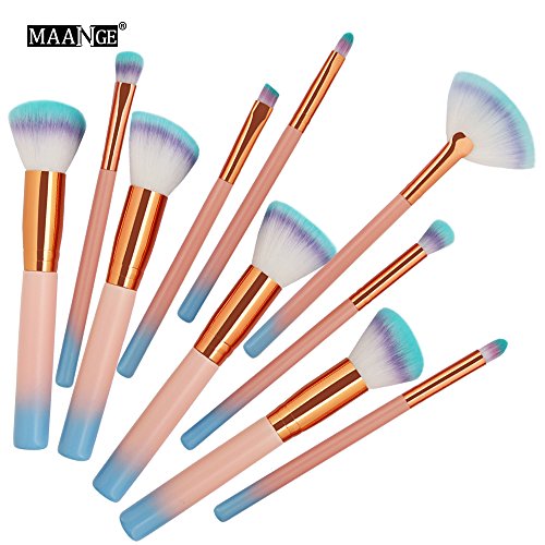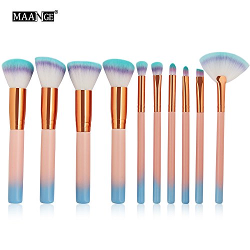MAANGE 10 Pcs Wooden Makeup Brush Set Synthetic Kabuki Foundation Blending Blush Eyeliner Face Powder Brush Makeup Brush Kit Beauty Cosmetic Tools