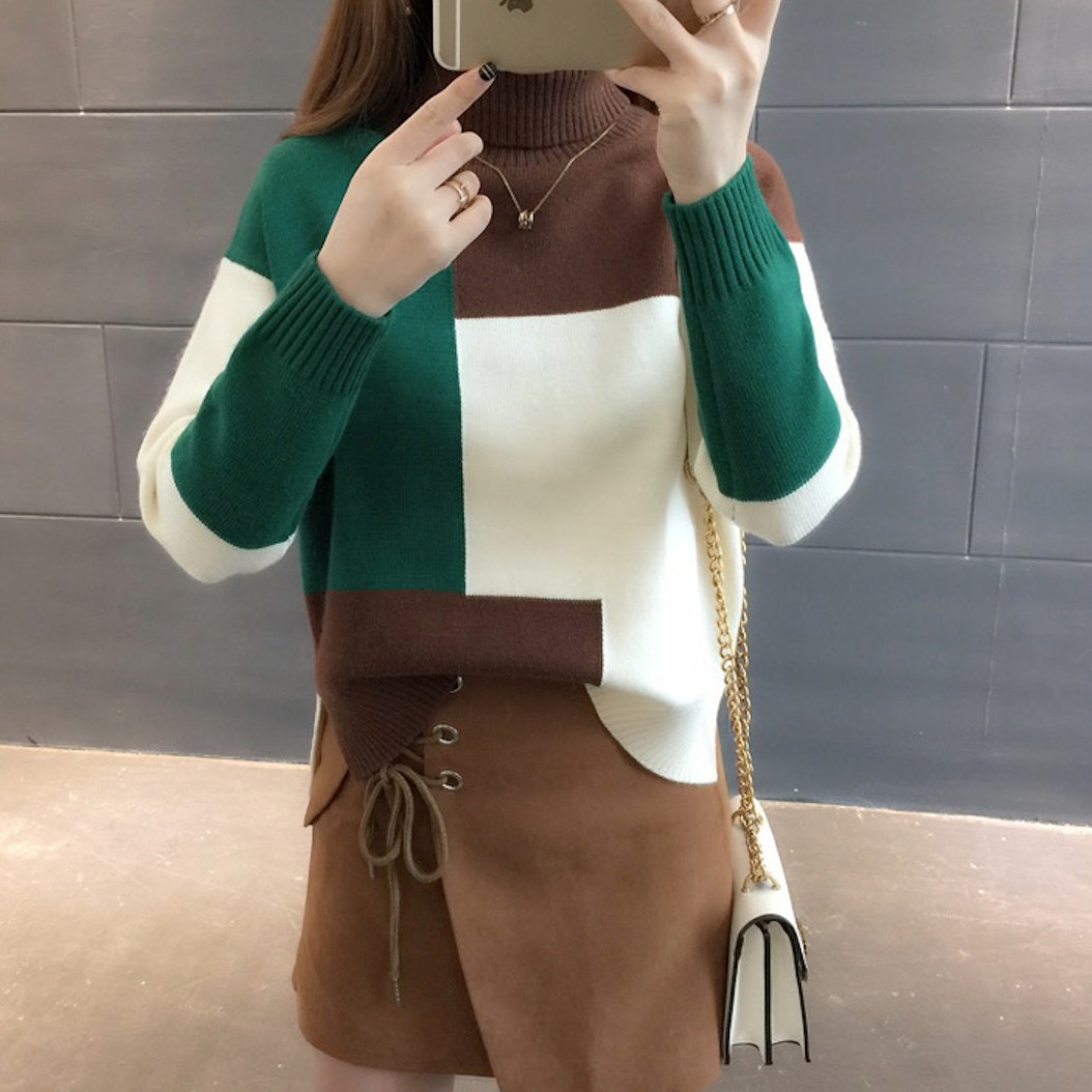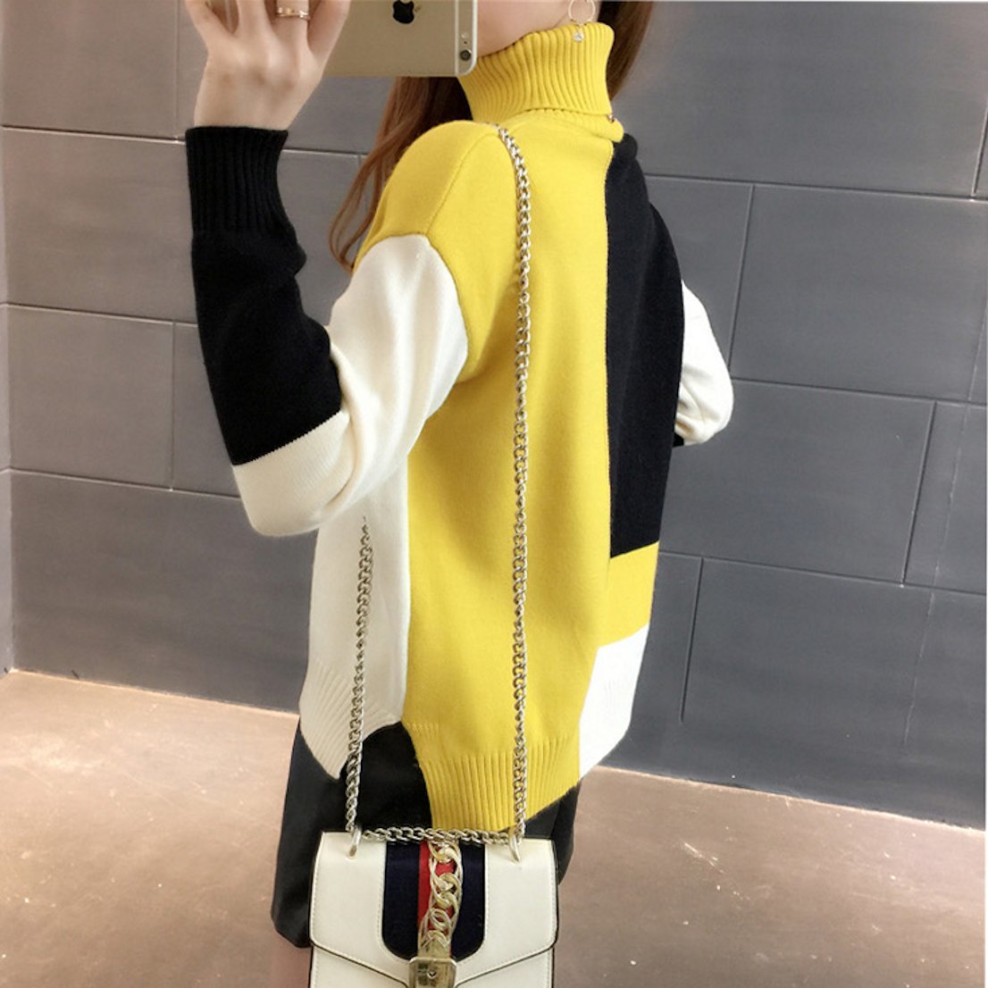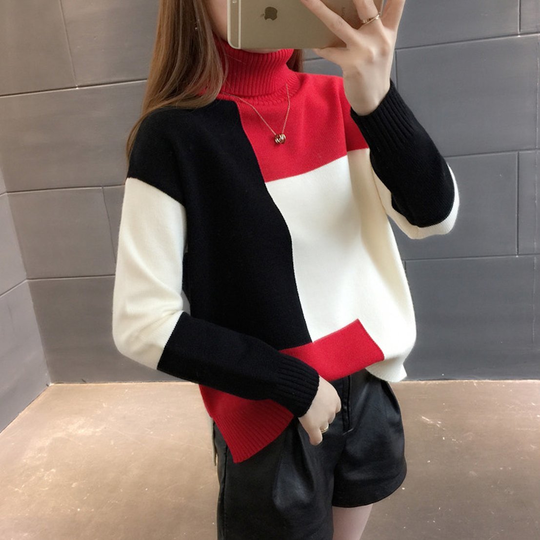 大人女子 きれいめ リブ切替 カラー配色 タートル ニット バイカラー スリット 秋冬 トップス 通勤 ハイネック ドロップショルダー フェミニン