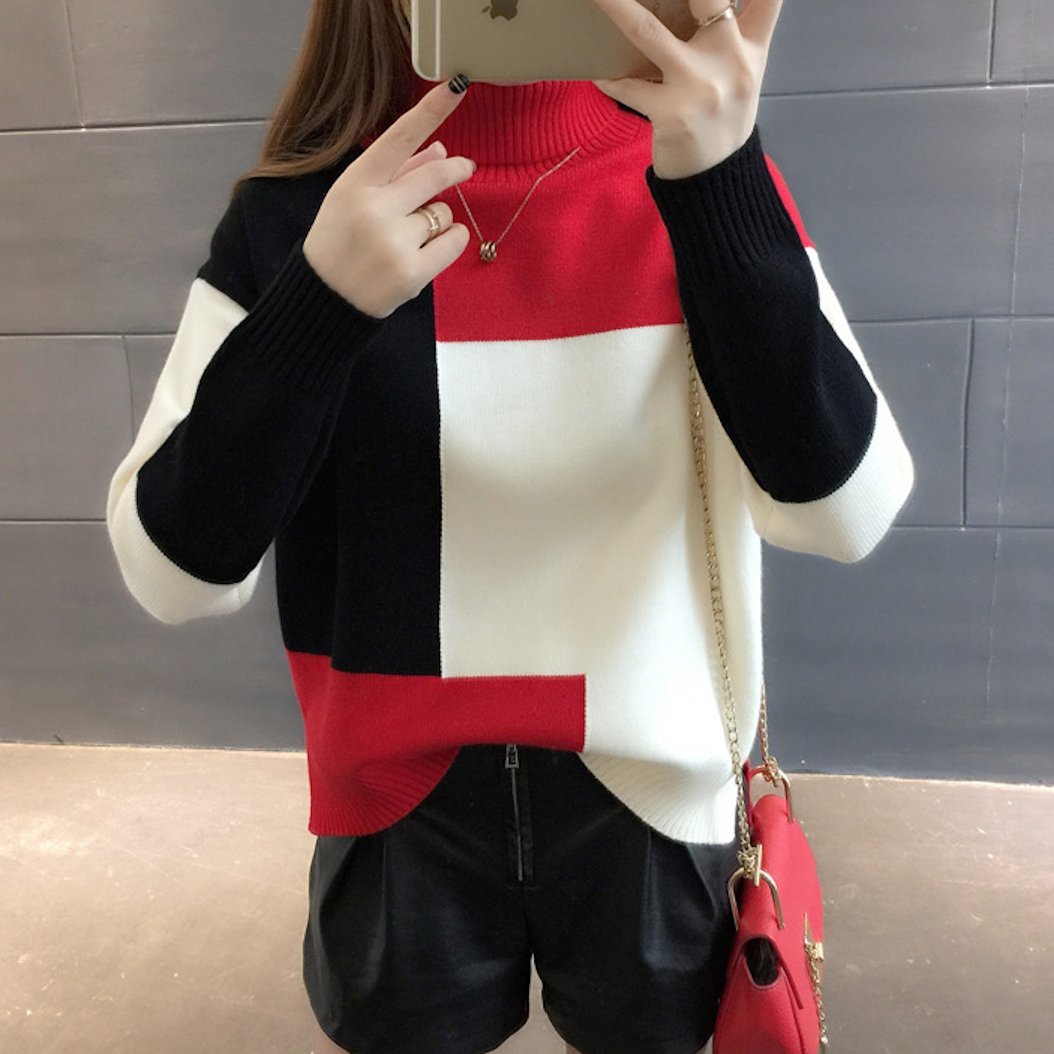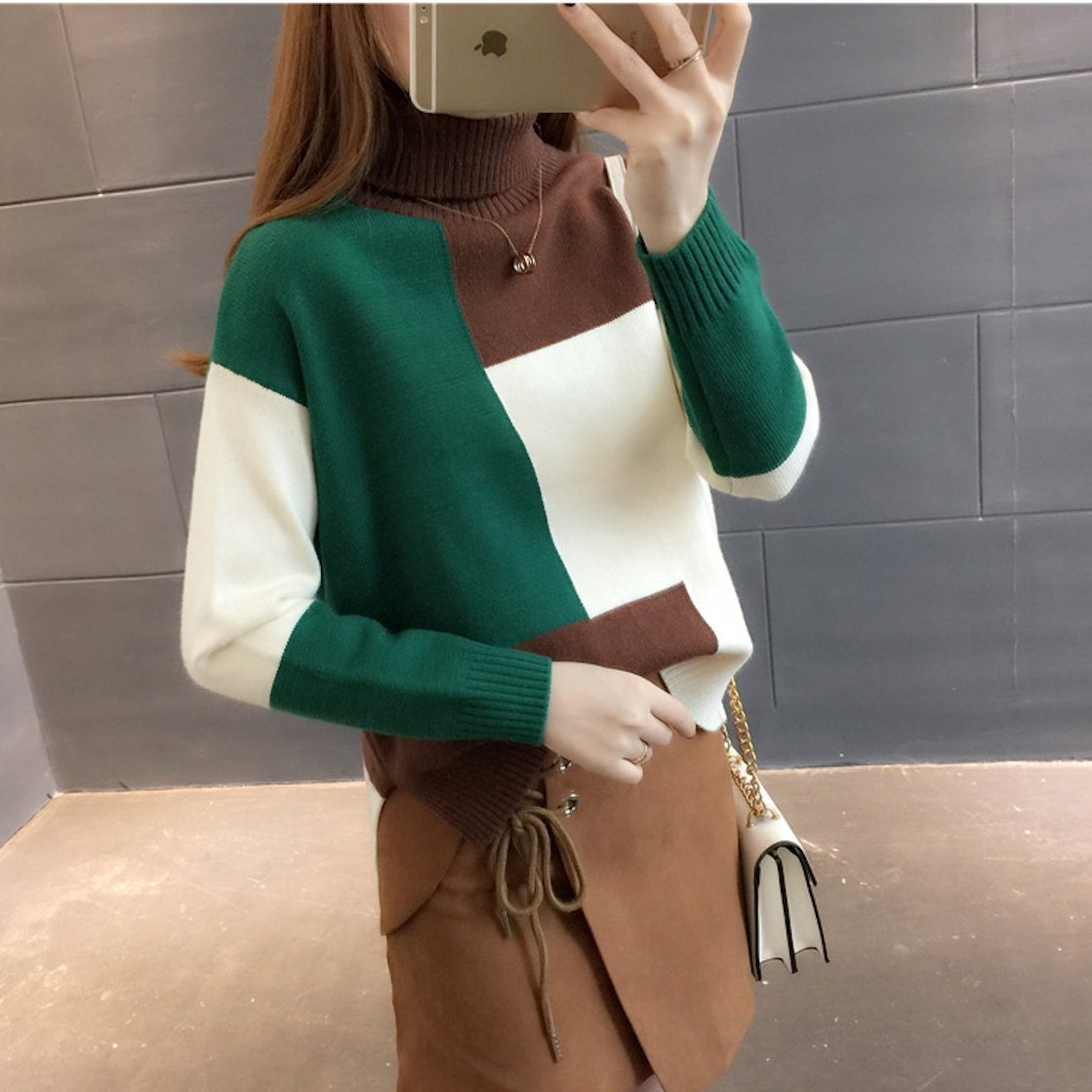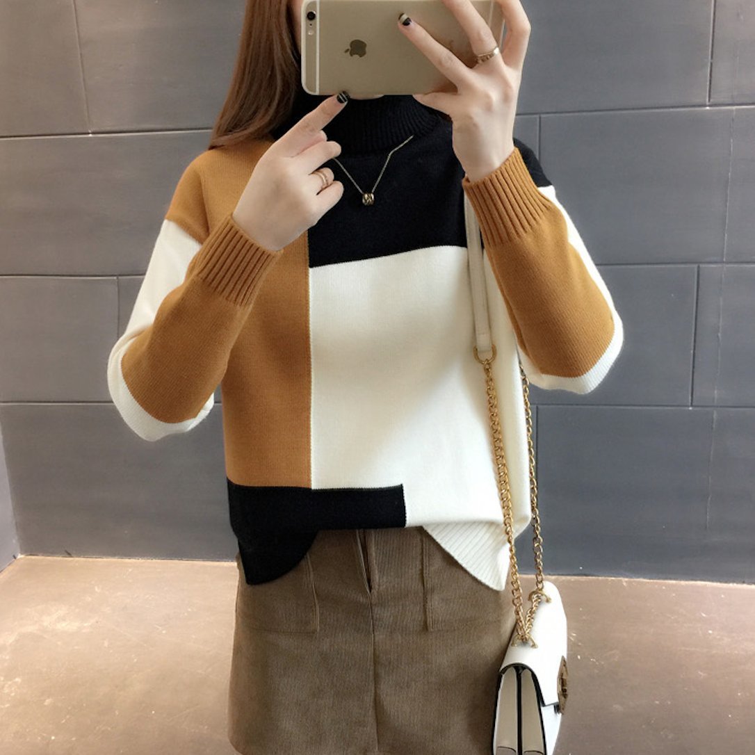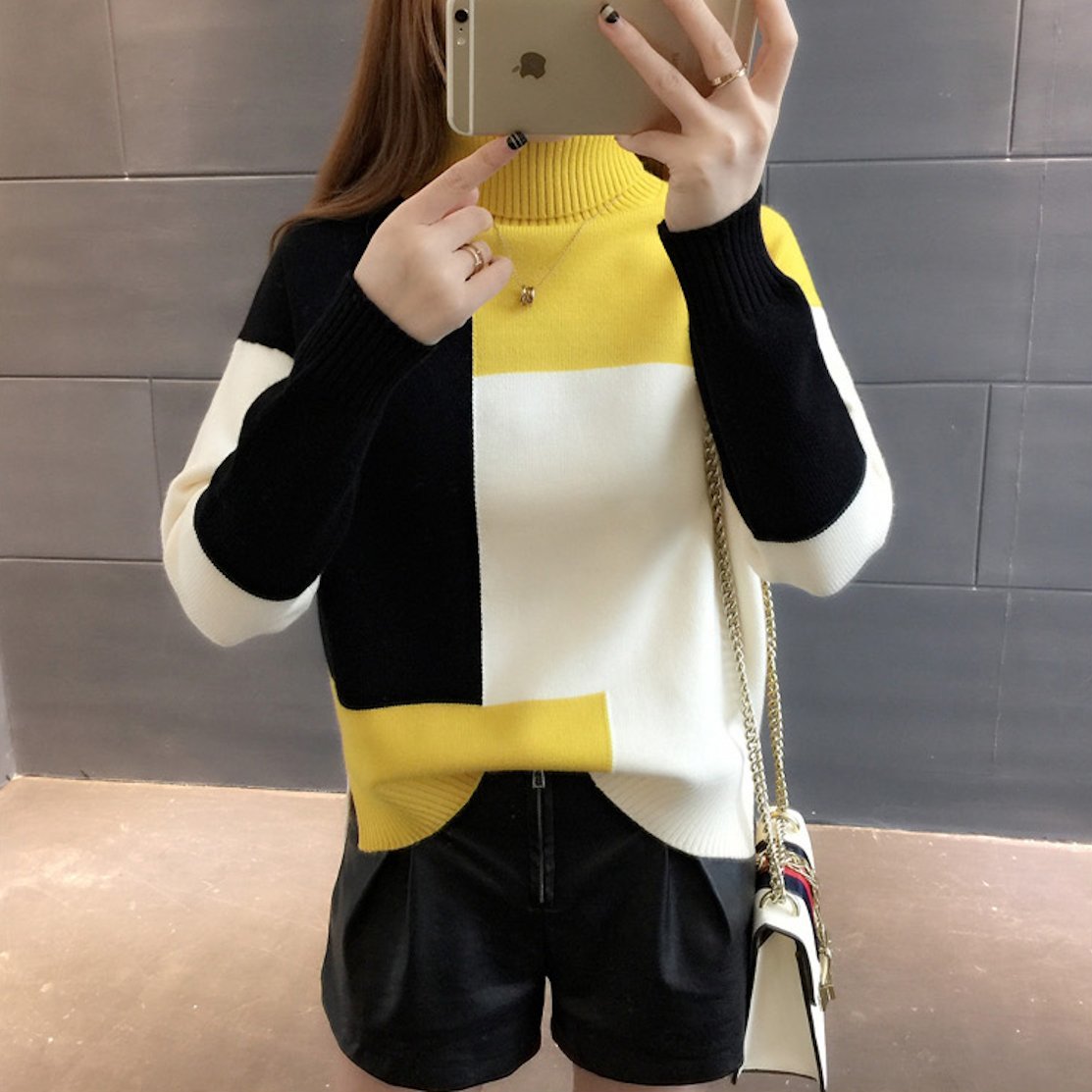 大人女子 きれいめ リブ切替 カラー配色 タートル ニット バイカラー スリット 秋冬 トップス 通勤 ハイネック ドロップショルダー フェミニン