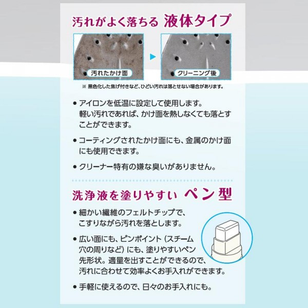 接着芯貼りなど、手芸の色々な作業でかけ面には汚れが蓄積してしまいがち。使いやすいクロバーのアイロンクリーナーでこまめにお手入れしましょう! 製造国:日本 成分:非イオン界面活性剤(脂肪酸系)、防腐剤、水 内容量:20ml 仕様:液性:中性 ※サプライヤー直送品 ご注文後2~3営業日後の出荷となります【商品名】クロバー アイロンクリーナー(リキッド) 39-263
