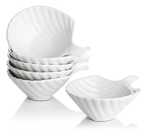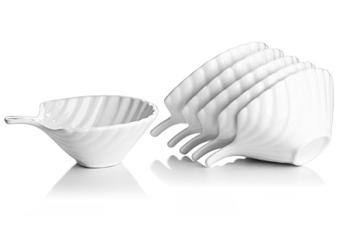 Lifver 6-Pack Bowl Sets/Ramekins, Lovely Shell-shape Porcelain Dip Bowls, White