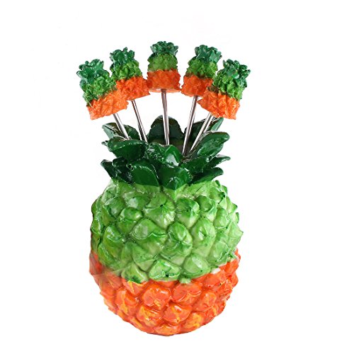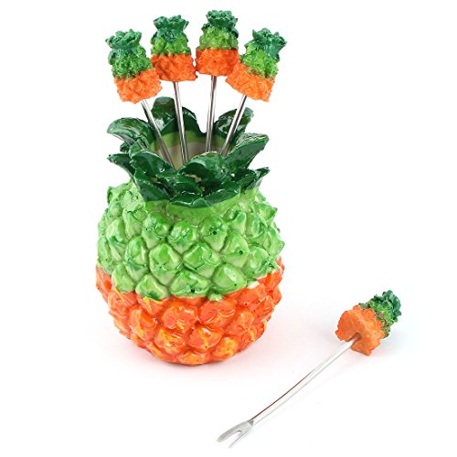 uxcell Plastic Home Pineapple Design Dessert Appetiser Snack Fruit Vegetable Fork Holder Set