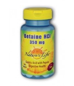 Studio : Nature's Life Publisher : Nature's Life Binding : Health and Beauty Product Description Betaine HCL 350mg 100 TabletProduct Description Betaine Hydrochloride (HCL) is a natural aid to support healthy digestive function.