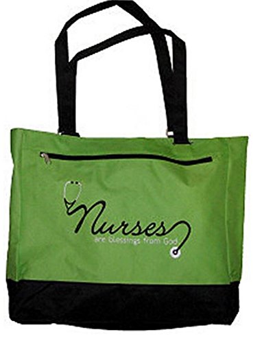 -. Brand : Kelli's -. Color : Green -. Department : Women -. Feature : Canvas Green Tote / "Nurses Are Blessing From God" stitched on front of tote / Large zipper closure, Zippered pocket on out side,Zippered pocket inside / 18" -. ProductGroup : Apparel -. ProductTypeName : LAGE -. Size : Large -. Title : NURSE CANVAS TOTES (Green) 18" "NURSES ARE BLESSINGS FROM GOD"