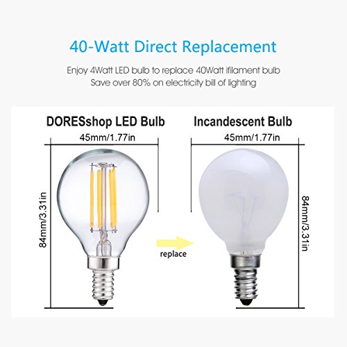 DORESshop Globe Light Bulbs Candelabra Base, 4W (40W Equivalent Incandescent), Dimmable G45 LED Filament Bulb, 2700K Warm White, E12 Candelabra Base, 400LM, Decorative Candle Bulbs (4 Pack)
