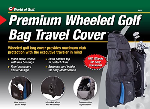 Wheeled golf bag cover provides maximum club protection with the executive traveler in mind Inline skate wheels for easy transportation