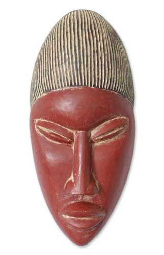 NOVICA Decorative Sese Wood Mask, Red 'Baule Freedom From Fear'