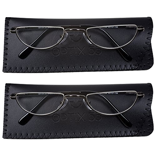 2 Men’s Half Frame Reading Glasses With Pouch - Comfortable Gunmetal Frame with Rubber Tip Temples - Pack of 2 Readers - +100 - By Optix 55