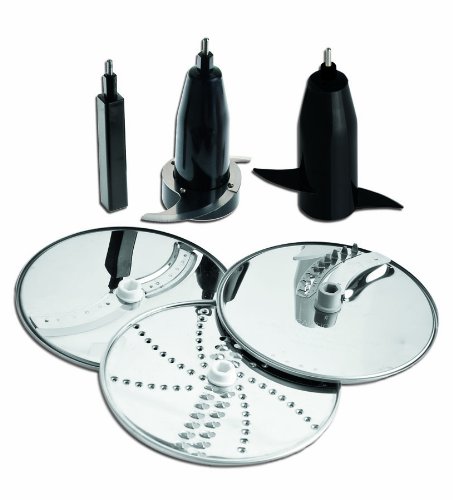 A versatile set of attachments is included, with two blades and three slicing discs. The stainless steel S-Blade stays sharp and cuts quickly while the dough blade is useful for preparing homemade pizzas and breads. Two-sided slicing/shredding and grating discs are reversible for multiple uses. A unique French-fry cutter is perfect for potatoes or julienne-cut veggies.
