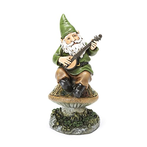 Joseph's Studio Gnome Playing Banjo Sitting on Mushroom Celtic Garden Stone, 6-Inch, Made of Resin Stone