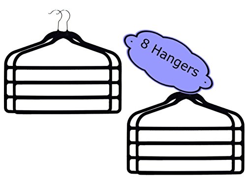 -. Feature : SET of 8 velvet hangers Hanger Holds 4 pairs of pants, one on each tier. / NO SLIPPING OR SLIDING Hangers are covered with black velvet to keep Pants,from falling onto the floor and to protect the fabric from friction / SPACE SAVING DESIGN These hangers are ultra slim, so you can fit more in your closet / ORGANIZE YOUR CLOSET WITH EASE These hangers feature special dividers that make them perfectly suited to hold accessories neatly and within easy reach / SATISFACTION GUARANTEED If you're not delighted with the quality of our hanger set, you can return it within 30 days for a full refund