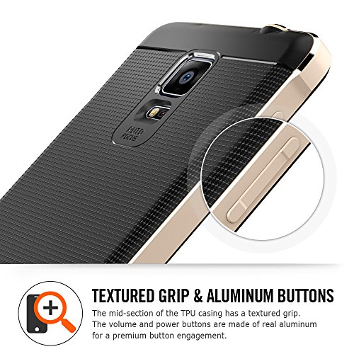 - Feature : Combination of TPU and Aluminum Frame for drop and scratch protection / Slim and form fitted to show the perfect shape of your device / Metalized polycarbonate control buttons for a stylish look / Advanced Shock Absorption Technology: Web Pattern TPU case / Compatible with Samsung Galaxy Note 4 (2014)