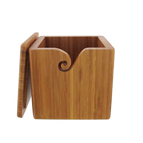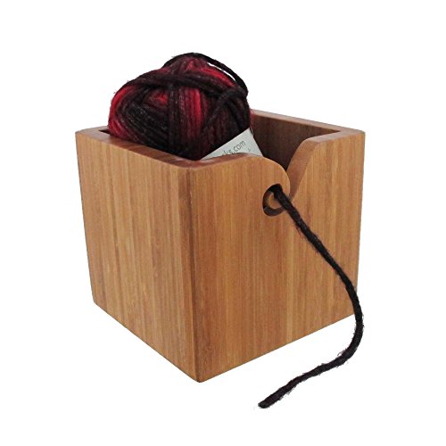BambooMN Brand - Bamboo Yarn Bowl with Removable Lid -Yarn Holder for Knitting and Crochet - Carbonized Brown Box