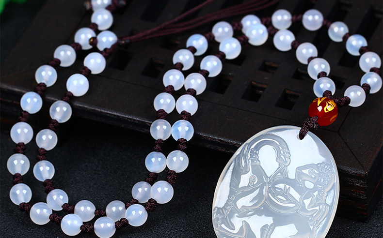 开光属马羚象镇宝白玉髓吊坠生肖羚象赐福开运吊坠