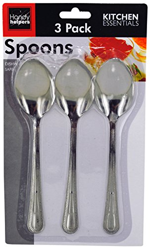 - Perfect for soups and stews! They feature extra-wide, round basins and an angled shape for easier scooping without spilling. Set includes 3 spoons, each measures approximately 7-inch long