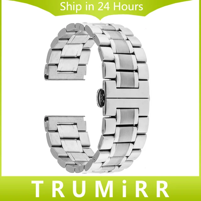 | [해외]24 미리메터 스테인레스 스틸 손목 sony smartwatch 2 sw2 smart watch 밴드 butterfly 버클 스트랩 교체 팔찌 실버 |