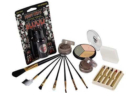 - A COMPLETE MAKEUP KIT THAT INCLUDES ALL YOU NEED: Making this zombie makeup kit yours means that you get everything you need to achieve the perfect, detailed, realistic, professional Halloween makeup. This set includes special effects zombie makeup, zombie death makeup, 5 crayons, 4 application brushes, a sponge, zombie blood and setting powder. Get ready to achieve a flawless makeup result which will shock anyone that comes in your way.