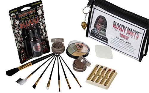 Zombie Makeup Kit By Bloody Mary - Halloween Costume Special Effects Palette - Walking Dead FX Makeup Tools - 5 Crayons, Blood, Setting Powder, 4...