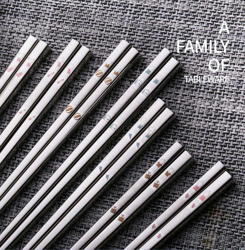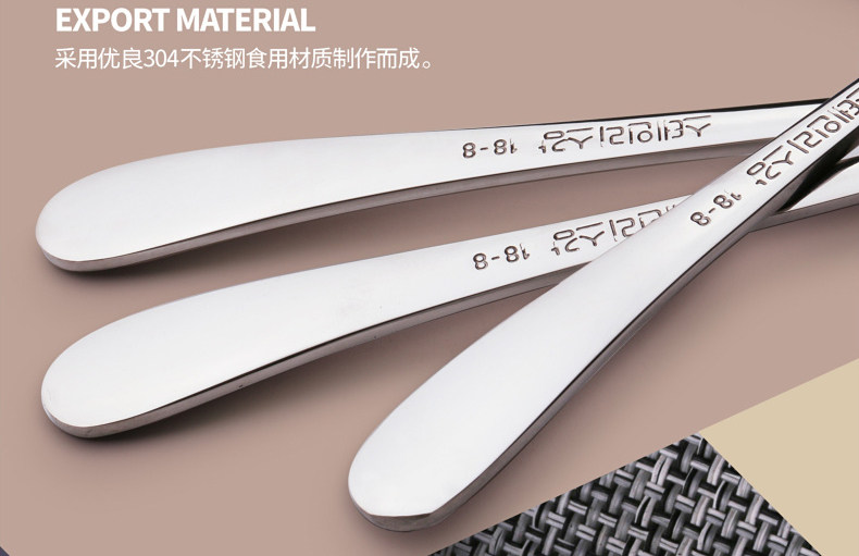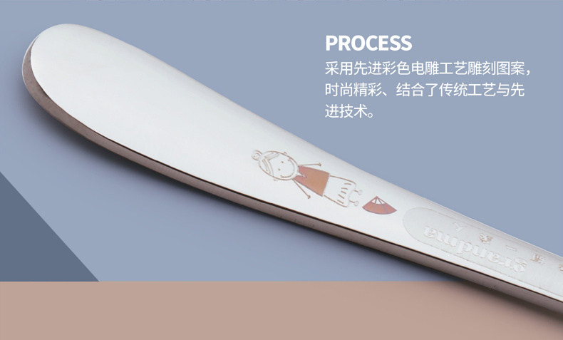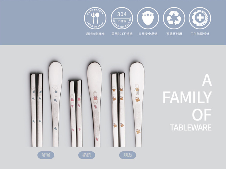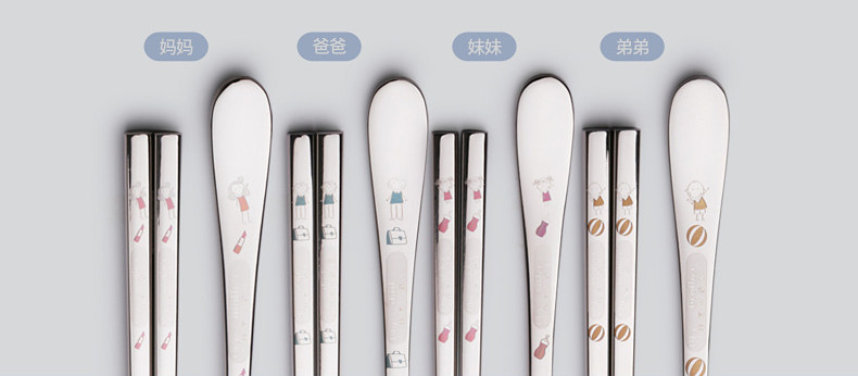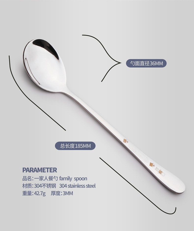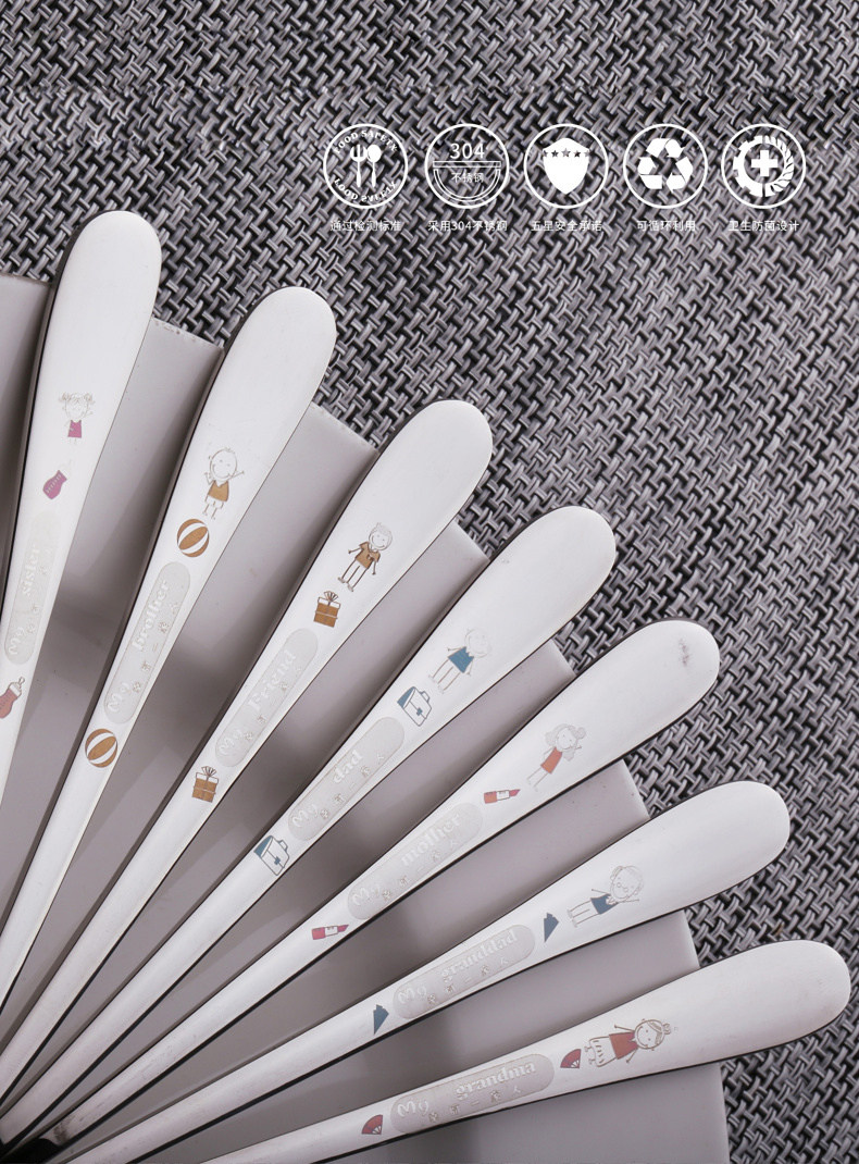 一家人创意图案304不锈钢勺子家用防滑 防烫扁形勺子金属家庭套装