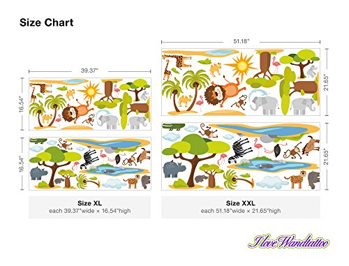 Wall Stickers "Safari" Child's room wall stickers as creative decorating solutions. Brighten up your empty walls with our colorful wall stickers! Our self-adhesive wall stickers can be installed and removed easily. When you decide to remove the sticker, gently lift it and pull it away from the wall. Before you get started Ensure the surface is free from oil, latex, and silicon. Our wall stickers can be used on any flat, smooth, finished surface. Size XL: 2 sheets each 39.37"wide × 16.54"high Sample sizes Big Tree: 16.92"wide × 13.78"high Lion: 7.87"wide × 10.63"high Large watering place: 27.56"wide × 4.72"high Size XXL: 2 sheets each 51.18"wide × 21.65"high Sample sizes Big Tree: 21.65"wide × 17.72"high Lion: 9.84"wide × 13.78"high Large watering place: 35.43"wide × 5.91"high 0 |