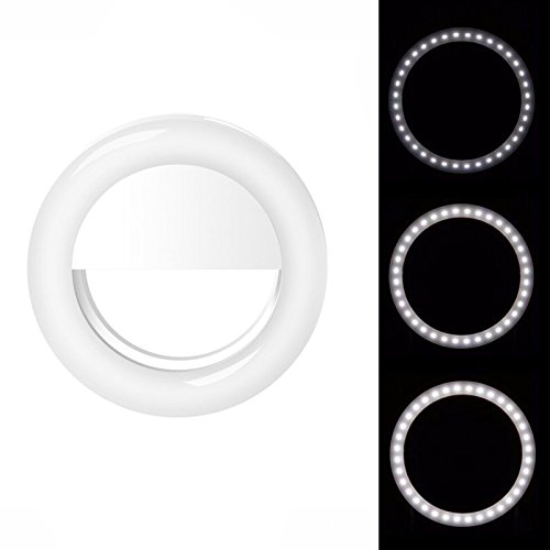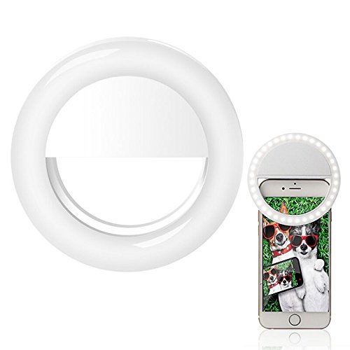 NewVan Tech Rechargeable LED Selfie Ring Light, Clip-on Adjustable Enhancing Dimmable Cellphone Camera Supplementary Lighting Night Selfie Light Lamp for Smartphones and Tablets (White)