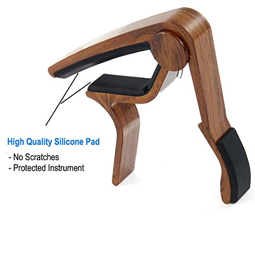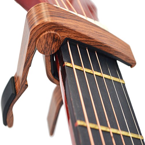 -woodgod Change Guitar Capo is a real quick change artist. - Quick-Change Capo is made of strong, lightweight Zinc alloy -Quick-Change clamps firmly to hold intonation, but is quickly and easily released and repositioned without disturbing the tuning. -You can operate your Quick-Change comfortably with one hand. You'll find it doesn't interfere with fingering and the pads won't mar or react with guitar finishes. -Guitar Capo Acoustic and Electric Guitars No Scratches, No Fret Buzz, Easy to Move - Also for Ukulele, Banjo and Mandolin - Single-Handed Professional Trigger Action. -Great as gift for friend / musician dimensions: 8 x 8 cm --WOODGOD is committed to give customer an excellent shopping experience ,if you have any questions, please do not hesitate to contact us., We will reply you in 24 hours. WOODGOD strives to be a trusted partner and seek to achieve customer satisfaction.We will provide you with a better product experience, and your satisfaction is our greatest pleasure! 0