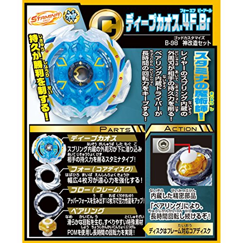 Studio : Beyblade Publisher : Beyblade Binding : Toy Product Description A remodeling set containing 4 varieties including a new Beyblade with gimmick! [Set contents] Layer (4), Disk (4), Frame (4), Driver (4), God Chip (2), Metal God Chip (2), Tool (1), Manual (1), Seal 1), bay code card (1), 0