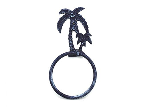 Hampton Nautical K-9009-dark-blue Dark Blue Whitewashed Cast Iron Palm Tree Towel Holder 9" - Beach Bathroom Decor - Beach Decor