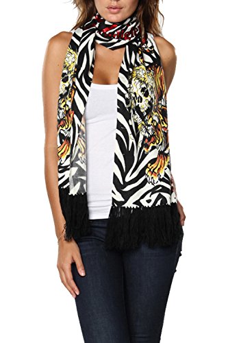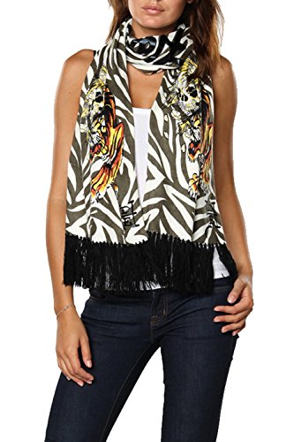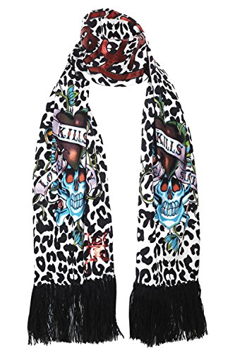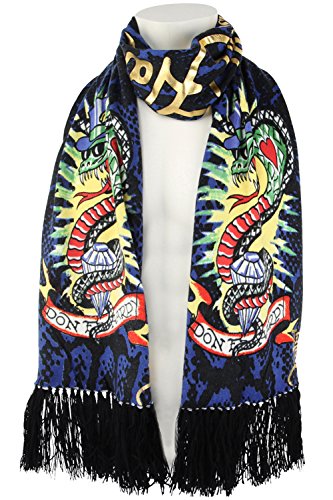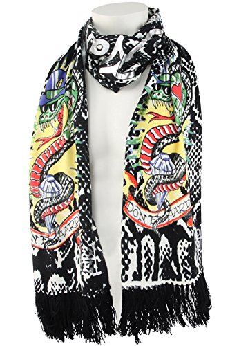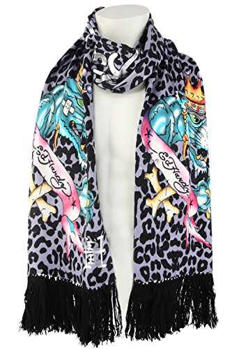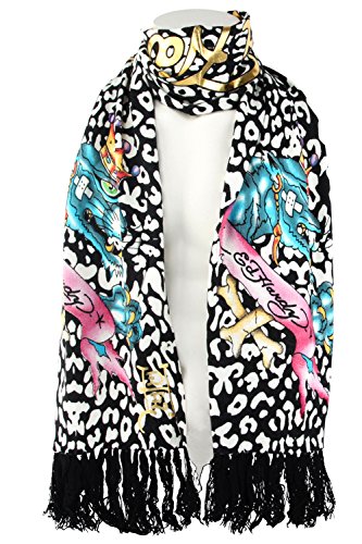 The Ed Hardy Womens Knit Scarf is a very soft and lightweight scarf that will really keep you in style at all seasons and warm during the cold winter time. This Ed Hardy scarf is made out of animal print on acrylic material and features tattoo graffiti print in brilliant color and has fringed edges. Stamped script lettering with the words Ed Hardy By Christian Audigier. This Ed Hardy Knitted Scarf is a piece of art and would make a perfect gift.Feature