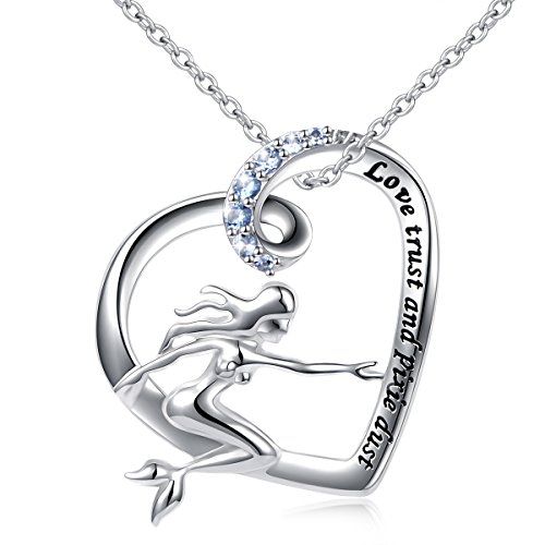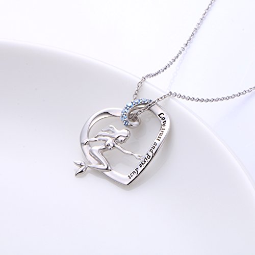 This design was inspired by the fairy tale "The Little Mermaid" . The necklace engraved " Love trust and pixie dust " and set in blue CZ stone which means the blue sea .