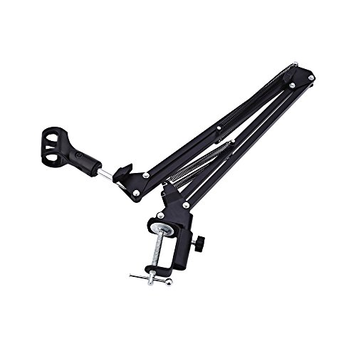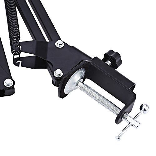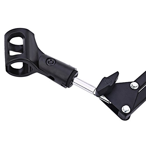 -. Feature : ● Boom Arm Mic Holder: Position your mic exactly where needed. / ● Quick and reliable microphone placement with hand-held microphone clip. / ● Universal mounting clamp: Attaches to tables, desks, shelves, counters, etc. / ● It can be widely used in Home Network Microphone, Dynamic Microphone, Condenser Mic, Recording Studios and Radio Stations and other occasions. / ● Dual metal support arms and boom mount, convenient universal table clamp mount attachment.