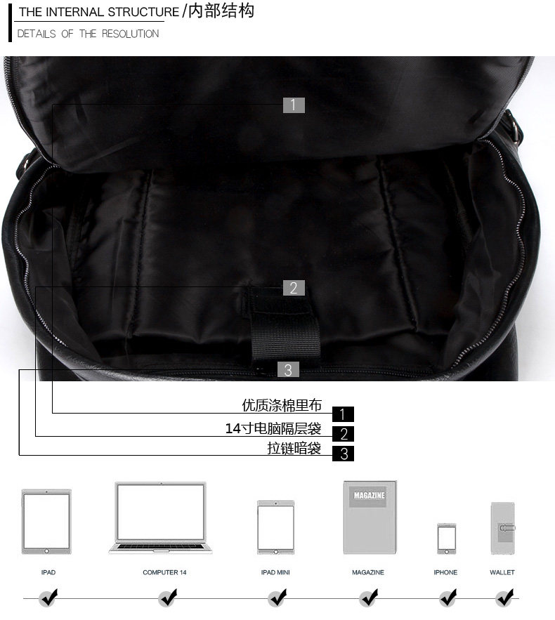 Internal structure: zipper pocket computer pocket