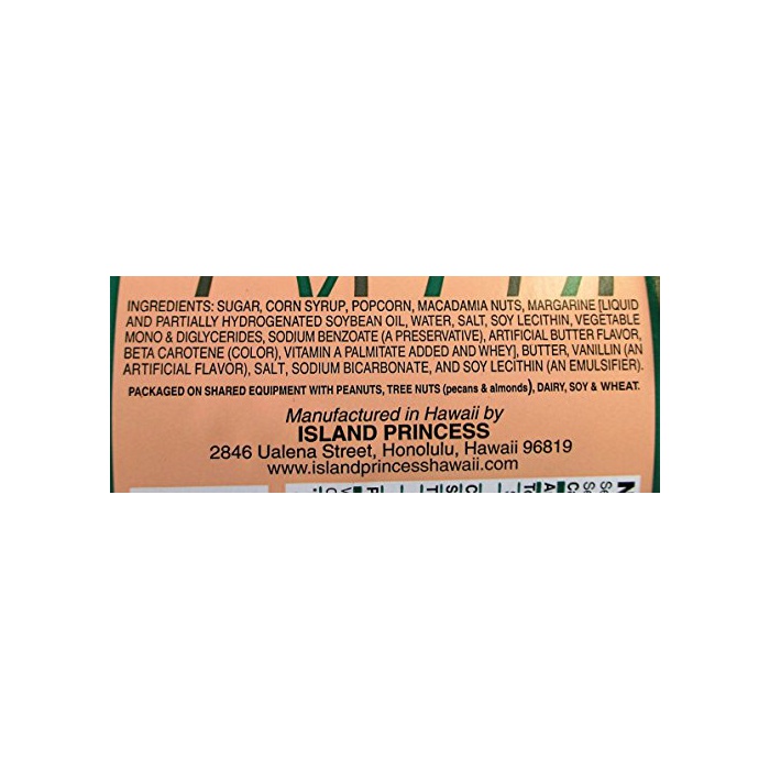 원재료:설탕,팝콘,콘 시럽,《마카다미아낫츠》,마가린,버터,식염,향료,중탄산나트륨,레시틴(대두 유래)