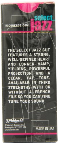 ReleaseDate : 2009-01-29 Studio : D'Addario Co. Inc Publisher : D'Addario Co. Inc Binding : Electronics Product Description The Rico Select Jazz cut features a strong, well-defined heart and longer vamp, yielding unprecedented projection and a clear, fat tone, with unsurpassed flexibility and lightning-fast response. Available with or without a French file.