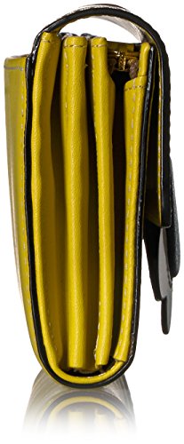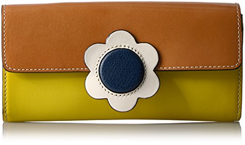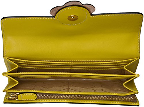 Giant flower' leather big folded purse. Inside details include, sand linear stem jacquard lining, one zip coin purse, 12 card pocket slots and two slip note compartments.