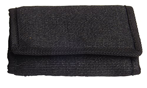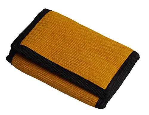 A plant-fiber tri-fold wallet made of natural hand-dyed abaca. This roomy wallet has 7 compartments to organize your things yet still be slim enough for the back pocket. Velcro closure allows you to store plenty in this wallet. Abaca is a natural plant fiber made from banana leaves. Abaca is the strongest natural fiber on par with nylon for strength and is highly resistant to salt water damage. While a leather wallet will soak up sweat and platic wallet will become yucky, this will remain undamaged and can be washed. Compartments include an open pouch for money, and zipper pouch for bills ot papers, a front easy-access pouch for credit cards, two hidden credit card pouches for seldom used cards or coupons, a clear pastic pouch for pictures of loved ones, and a zipper coin pouch for coins or keys. Wallet is 9.75 inches by 5 inches unfolded and 3.5 inches by 5 inches when folded.
