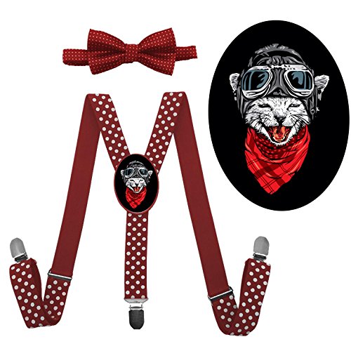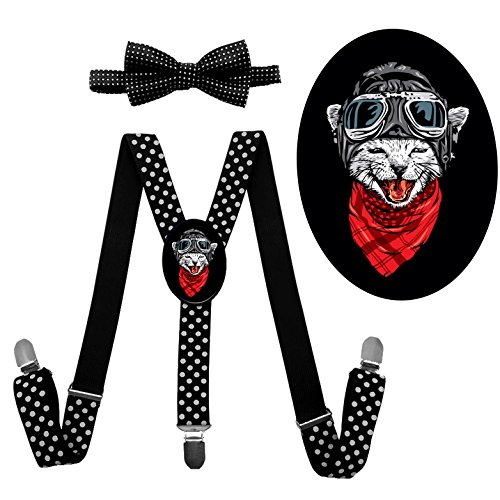 (QZ-Lee)/Accessories/Suspenders Cummerbunds/DIRECT FROM USA/QZ-Lee Cool Cat Y-back Adjustable Suspender With Bow Tie For Unisex