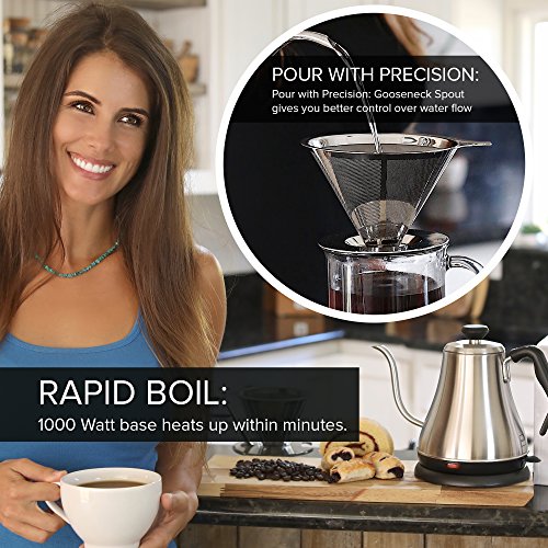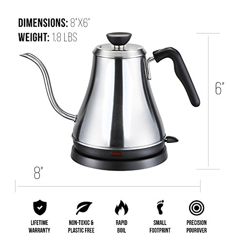 ★ CUSTOMER GUARANTEE We're confident you'll love our stainless steel electric gooseneck kettle, perfect for at home coffee and tea brewing. However, if you're not completely satisfied, we'll give you a 100% refund within 90 days of purchase--NO QUESTIONS ASKED. We have the best customer service on Amazon, and YOU, the customer, are our top priority.