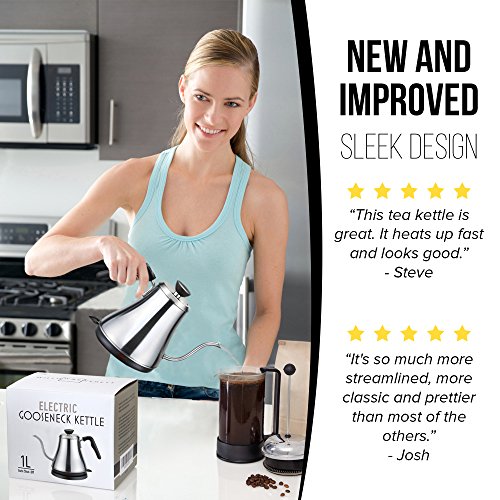 ★ BREW BETTER COFFEE OR TEA - If you really want to enjoy a good cup of coffee or tea, normal kettles probably aren't going to get the job done. The long neck of our 1 liter electric gooseneck design gives you a slow, controlled and precise flow of water that is optimal for extracting the most flavor when you brew coffee or tea using the pour-over method.