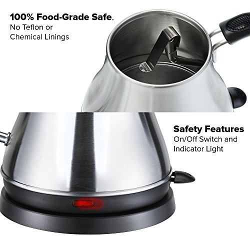 ★ QUICK AND ATTENTION-FREE BOILING - A 1000 watt, 120 volt electric base quickly and conveniently boils your water. Just flip the switch, walk away and tend to other things while your water boils in a fraction of the time compared to a normal kettle. When your water has boiled the auto shut-off feature will immediately power down the unit and the kettle easily lifts off the base for easy pouring.
