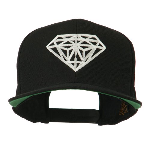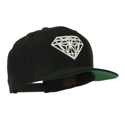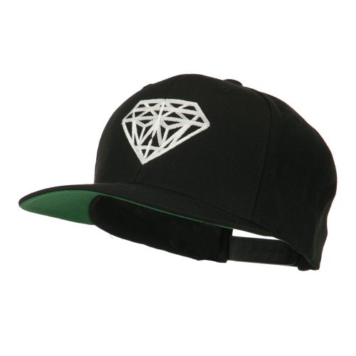 -. Binding : Apparel -. Brand : E4hats -. Color : Black -. Department : mens -. Feature : Made of 80% acrylic and 20% wool. / One size fits most with adjustable plastic snap closure, fitting up to XL. / Same material inner hatband. / Adult/Unisex. / Crown measures 4 inches deep. -. ProductGroup : Apparel -. ProductTypeName : HAT -. Title : Big Diamond Embroidered Flat Bill Cap - Black