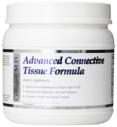-. Binding : Health and Beauty -. Brand : Collagen MD -. EAN : 0785923342047 -. Feature : A source of 19 amino acids / A nutrient-rich formulation with highly-bioavailable collagen / A great addition to a professional age-management program for men and women -. IsAdultProduct : 0 -. Label : Collagen MD -. LegalDisclaimer : Any information regarding products is for informational purposes only. *These statements have not been evaluated by the Food and Drug Administration. This product is not meant to diagnose, treat, cure, or prevent any disease. Not suitable if you are pregnant, nursing, or on a restricted low protein diet. If you are taking any medication or have a medical condition please consult your physician before beginning any products. -. Manufacturer : Collagen MD -. MPN : C19898 -. NumberOfItems : 1 -. PackageQuantity : 1 -. PartNumber : C19898 -. ProductGroup : Health and Beauty -. ProductTypeName : HEALTH_PERSONAL_CARE -. PublicationDate : 2013-04-27 -. Publisher : Collagen MD -. Size : 14 oz -. Studio : Collagen MD -. Title : Collagen MD Advanced Connective Tissue Formula Powder, 14 Ounce -. UPC : 794628278827