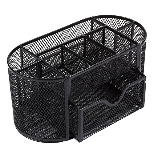 Office Desk Organizer - 8-Compartment Desk Caddy Mesh Organizer with Drawer for Office Supplies and Accessories, 8.66 x 5 x 5.11, Oval, Black