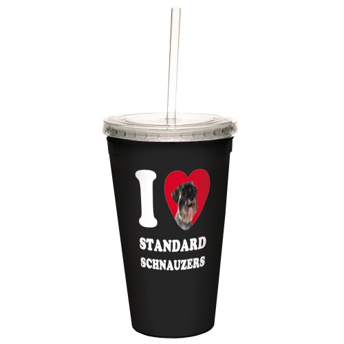 Tree-Free Greetings CC35128 I Heart Standard Schnauzers Artful Traveler Double-Walled Cool Cup with Reusable Straw, 16-Ounce