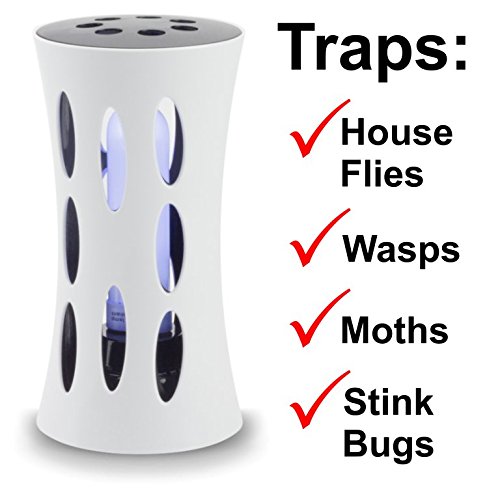 ULTRA SILENT & EFFECTIVE Electronic UV Light Indoor Fly & Insect Killer | Non-Toxic, Escape-Proof Design Uses Discretely Hidden Glue Board for “Out of Sight” Catches | Eco-Friendly & Attractive Design