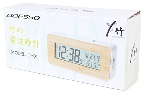 -. Title : アデッソ 目覚まし時計 竹の電波時計 温度 湿度表示 バックライト付き シルバー T-01